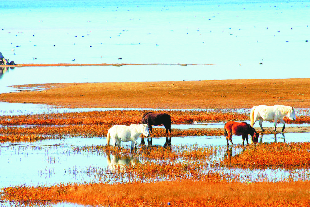 40余年來,海晏人用自己的智慧和汗水、忠誠和擔(dān)當(dāng)、執(zhí)著和奉獻,在湟水源頭青海湖畔濃墨重彩地描繪了一道道綠色生態(tài)屏障,譜寫了一曲曲播撒綠色的燦爛樂章。如今你會看到這塊湖濱沙地已經(jīng)形成了一道獨特的沙漠景觀,成為和遠處蔚藍色的青海湖交相輝映的人造奇觀。