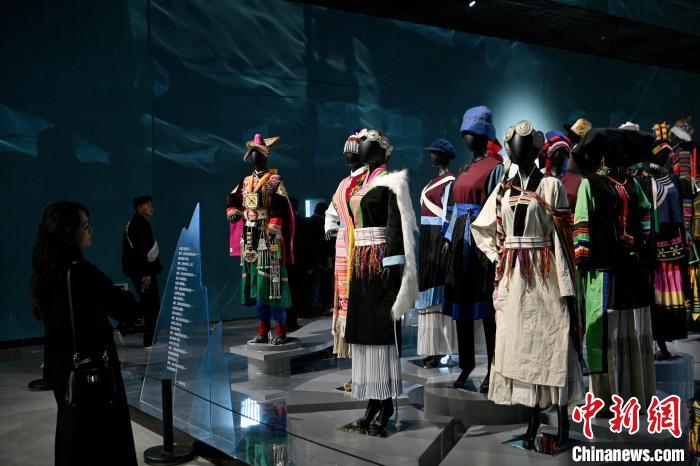 圖為展覽的“一方山水一方人”展區(qū)中,集中展示的民族服裝。中新網(wǎng)記者 李嘉嫻 攝