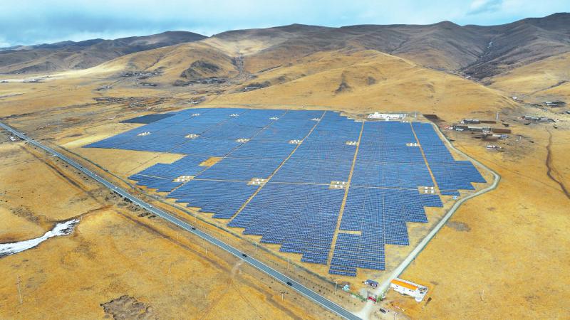 12月22日,四川省阿壩藏族羌族自治州阿壩縣蘭措瑪光伏電站,一片片光伏板在陽光照射下源源不斷地送出清潔電力。蘭措瑪光伏電站是阿壩縣首個大型光伏電站,除了發(fā)揮發(fā)電作用外,光伏板的下方還種植了牧草,實現(xiàn)經(jīng)濟效益、社會效益和生態(tài)效益的多重豐收。
