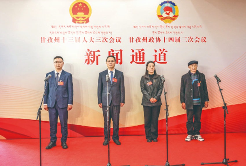 1月30日下午,甘孜州十三屆人大三次會(huì)議“代表通道”正式開啟。瀘定縣委副書記、縣長王蕾,得榮縣日雨鎮(zhèn)黨委書記江潔,亞丁景區(qū)管理局游客服務(wù)科科長余光榮,瀘定縣磨西鎮(zhèn)青岡坪村支部書記、村委會(huì)主任呂東才四位州人大代表在現(xiàn)場(chǎng)回應(yīng)社會(huì)關(guān)切熱點(diǎn)。