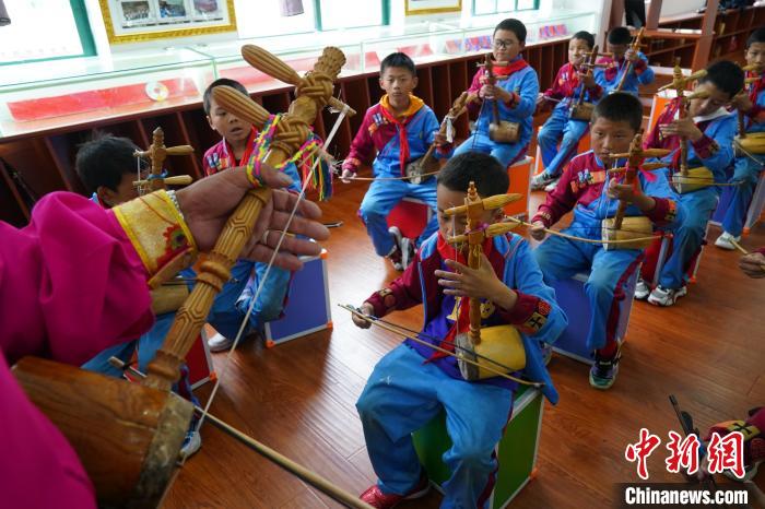 2023年6月21日,德欽縣第一小學的學生們在練習藏族傳統(tǒng)樂器弦子。中新社記者 劉冉陽 攝