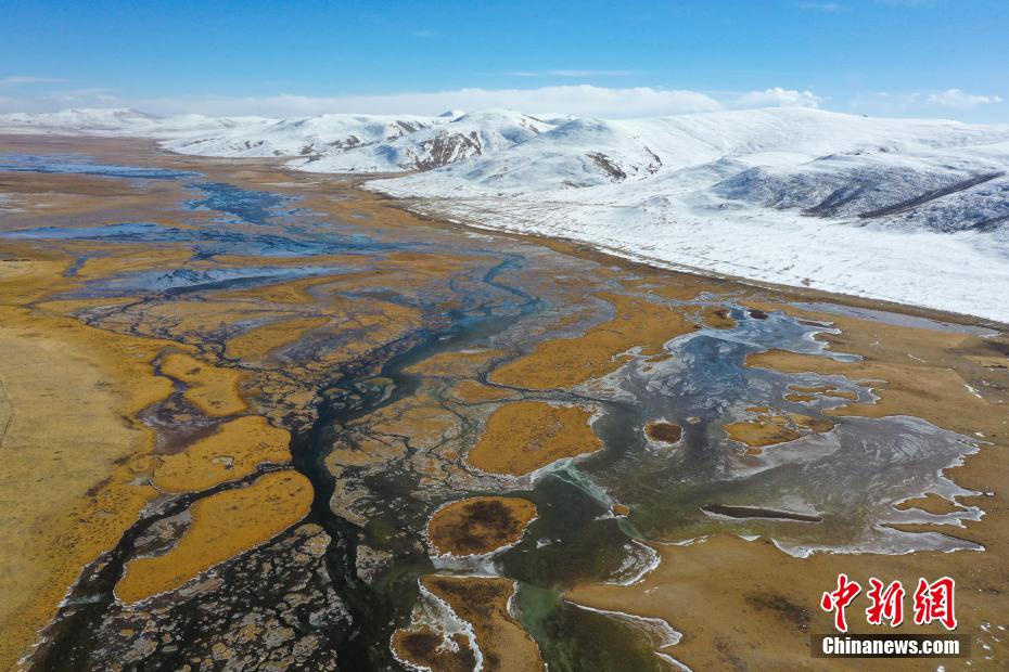 11月15日,航拍青海玉樹隆寶灘國(guó)際重要濕地冬日旖旎景色。降雪過(guò)后,位于青海省玉樹藏族自治州玉樹市境內(nèi)的隆寶灘國(guó)際重要濕地連綿的山巒被白雪覆蓋,與金色的草地和蜿蜒的河流交相輝映,景色旖旎。[詳細(xì)] -