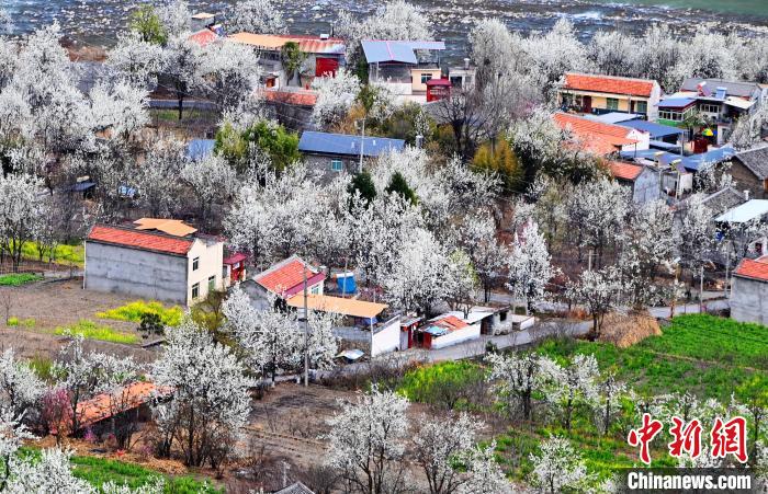 梨花叢中的村寨。記者 安源 攝