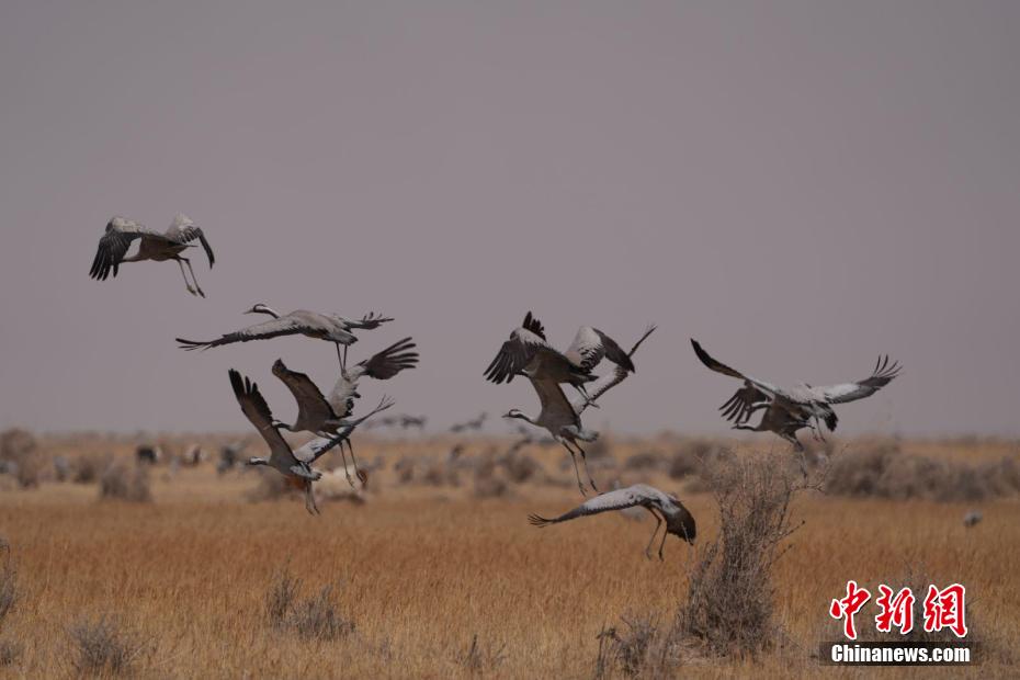候鳥遷徙季:大批灰鶴聚集青海省都蘭縣