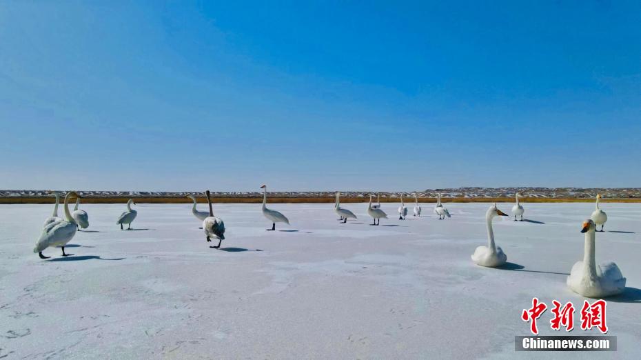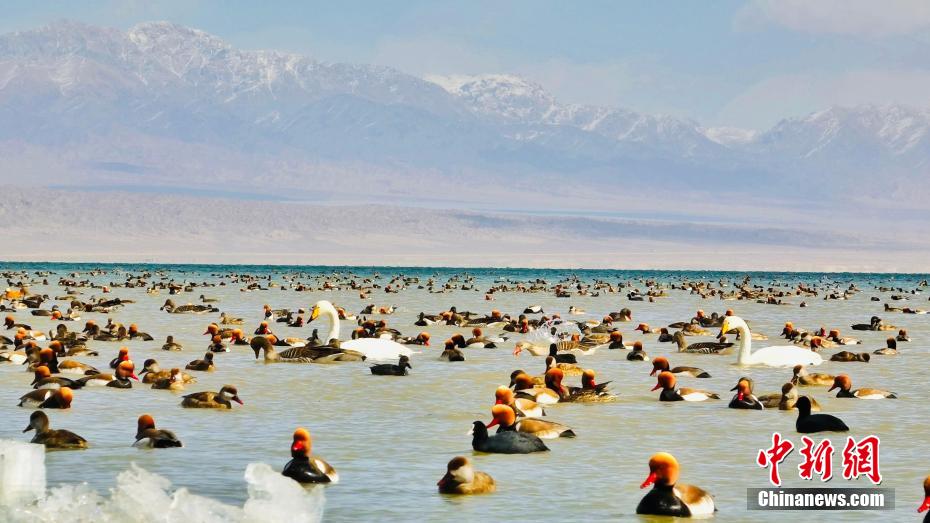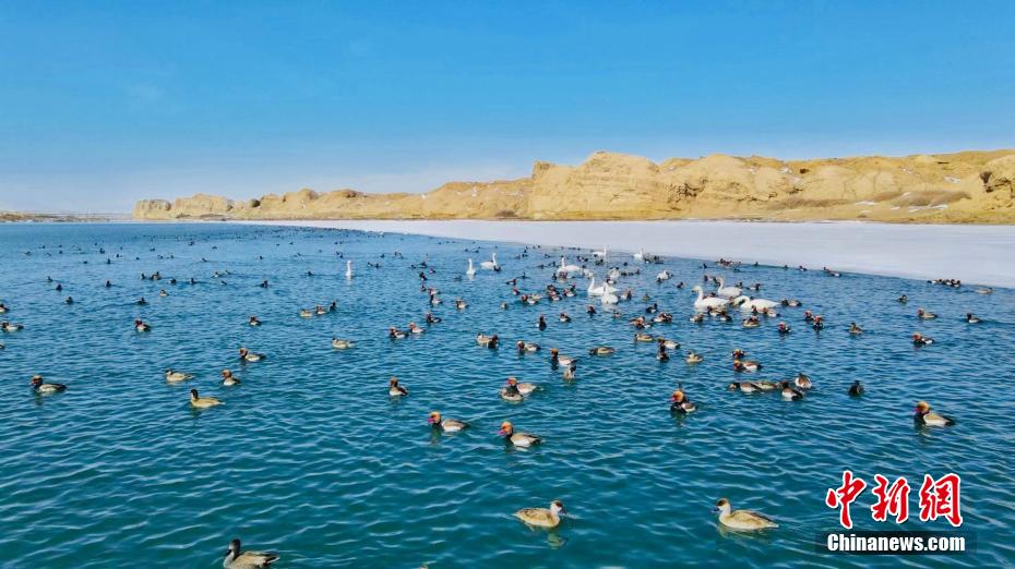 青海省海西州:首批越冬候鳥飛抵柴達(dá)木盆地托素湖
