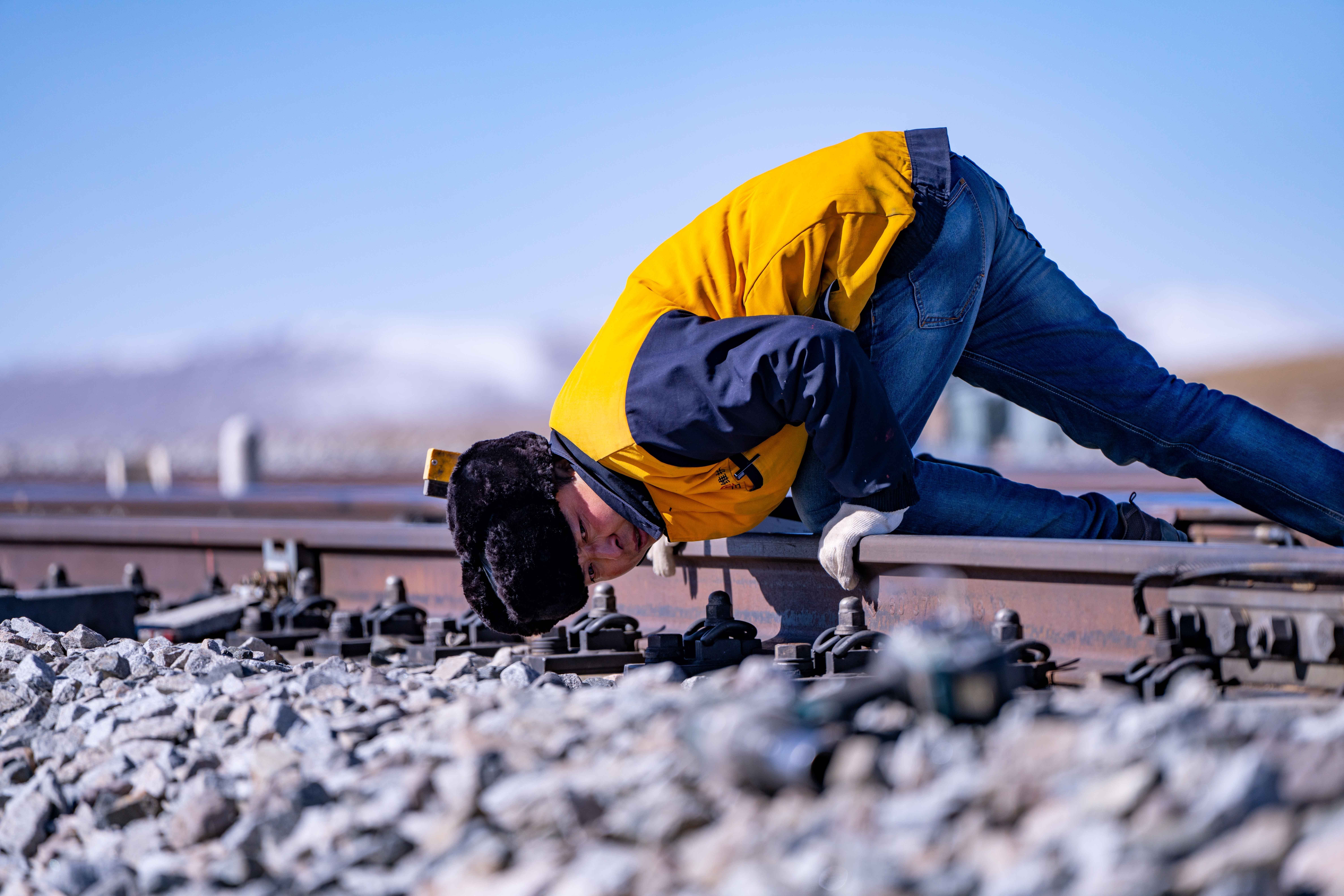 在唐古拉山,天窗無論早晚——從滿天星斗到晨光熹微,只要是需要施工的時候,馬祎俊都會帶著工人們奮戰(zhàn)在鐵軌之上。“為了讓鐵路更加平穩(wěn),我們多辛苦都值得。”他說。