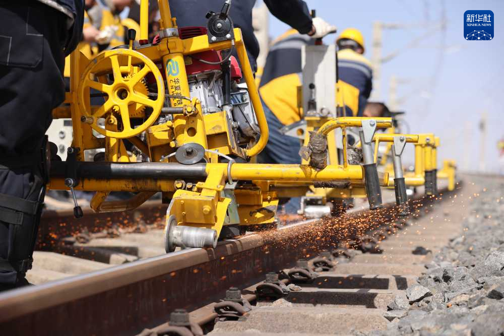 鐵路職工操作機(jī)器打磨軌道。(受訪(fǎng)單位供圖)