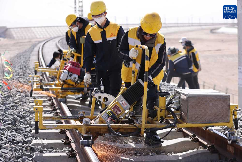 進(jìn)入4月,昆侖山上仍被白雪覆蓋。1日一早,在昆侖山腳下的格庫(kù)鐵路格爾木至格爾木南上行聯(lián)絡(luò)線(xiàn)區(qū)間防護(hù)欄外,中國(guó)鐵路青藏集團(tuán)有限公司格爾木工務(wù)段重點(diǎn)維修車(chē)間的8名職工正仔細(xì)地檢查裝備,為稍后的鋼軌“拋光”作業(yè)做好準(zhǔn)備。