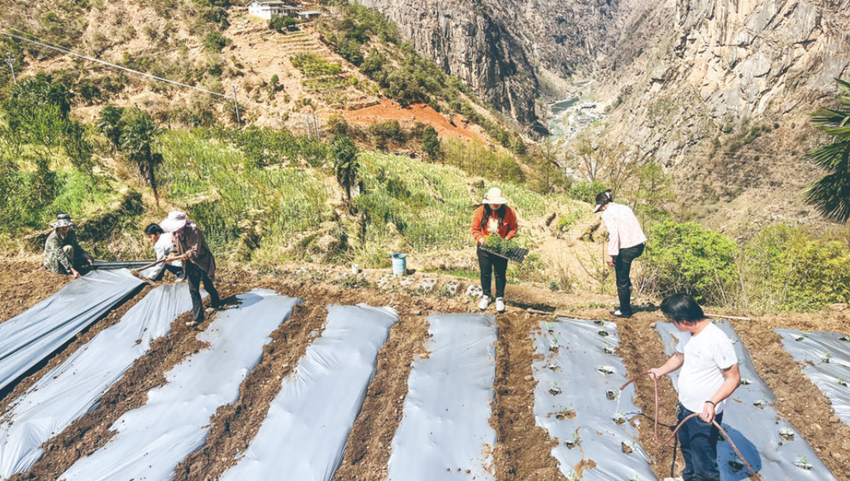 毛菇廠村位于雅礱江環(huán)繞錦屏山的大急彎上,全村平均海拔1900米,地處高山峽谷地帶,過(guò)去一直有村民將自家種植的玉米、白菜及各種蔬菜自行銷往縣城,但這種銷售方式相對(duì)傳統(tǒng),零星分散。如何在產(chǎn)能較低的傳統(tǒng)農(nóng)業(yè)中找到“特色細(xì)分領(lǐng)域”集中發(fā)力?2023年,煙袋鎮(zhèn)黨委等進(jìn)行多方調(diào)研后,決定依托該村土壤資源優(yōu)勢(shì),加速土地流轉(zhuǎn),“匯小田變大田”。
