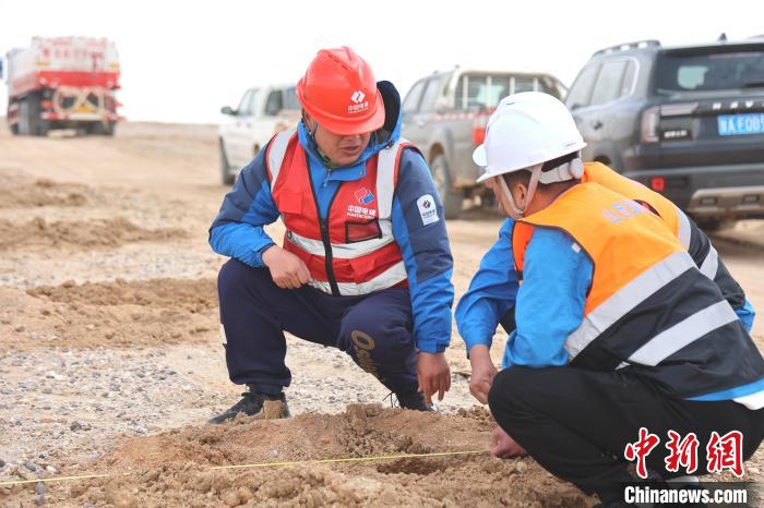圖為項目現(xiàn)場施工人員正在測量數(shù)據(jù)。張?zhí)砀?攝