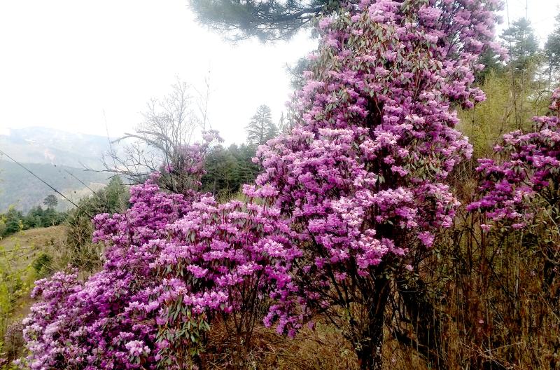4月底以來,香格里拉杜鵑花進(jìn)入盛開期。在虎跳峽鎮(zhèn)紅旗村至小中甸鎮(zhèn)的國道214線沿線,漫山遍野的杜鵑花把一座座山頭裝扮得如詩如畫,讓人流連忘返。