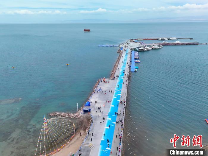 航拍游客在青海省海南藏族自治州共和縣青海湖二郎劍景區(qū)內(nèi)觀光。馬銘言 攝