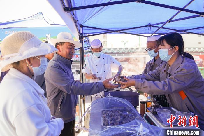 圖為民眾在賽場外品嘗海北州特色美食。馬銘言 攝