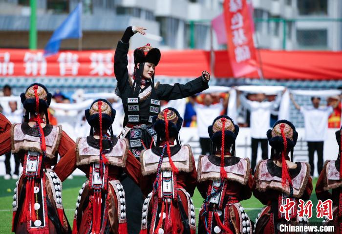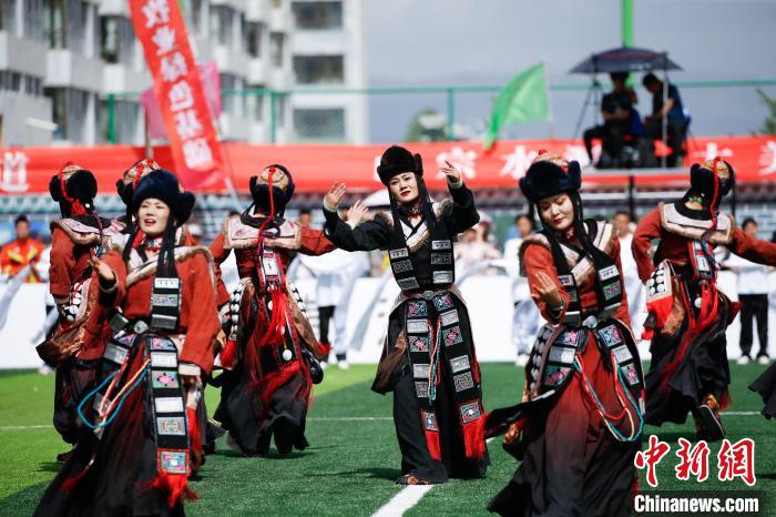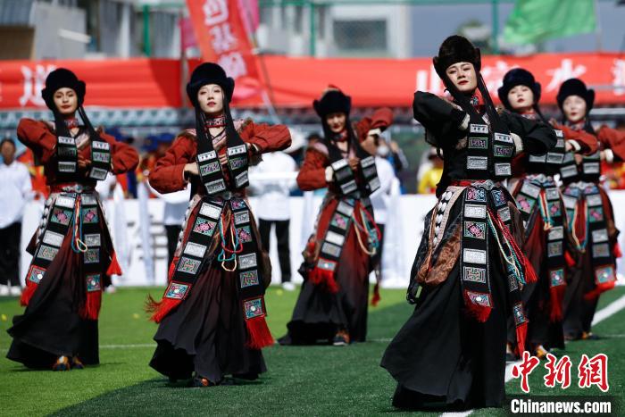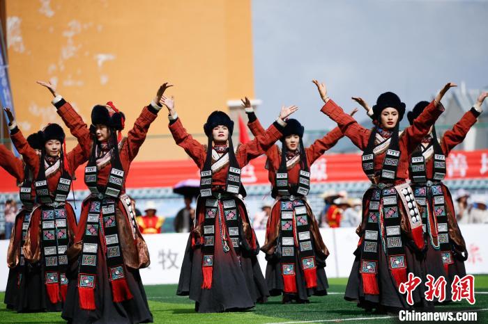 圖為演員通過舞蹈展示國家級非遺華熱藏族服飾。 馬銘言 攝