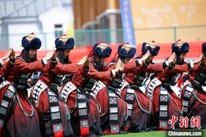 圖為演員展示國家級非遺華熱藏族服飾。馬銘言 攝