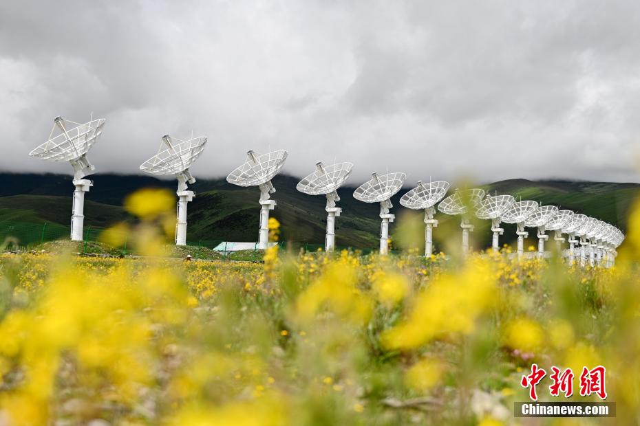 7月22日,四川稻城縣,草原花海中的天線矩陣。中新社記者 劉忠俊 攝