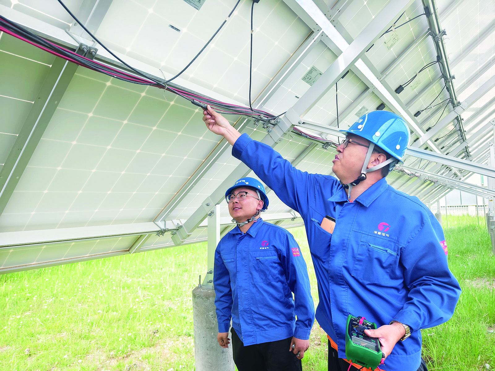 7月19日,記者來到位于青海省海北藏族自治州海晏縣甘子河鄉(xiāng)尕海村的海晏縣興輝光伏扶貧投資有限公司的光伏發(fā)電站時,技術員劉光耀和王海新正在光伏區(qū)檢查設備運行發(fā)電情況。