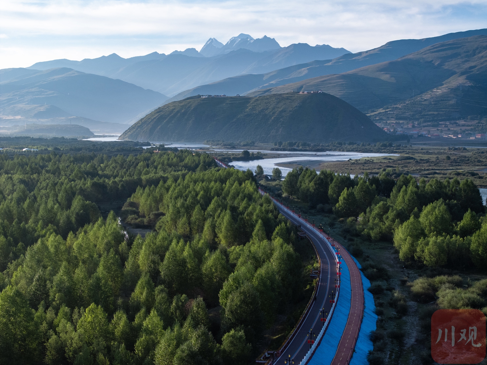 現(xiàn)在的雅礱林卡濕地公園樹木茂盛、水質(zhì)清澈,雅礱江如一條翡翠腰帶貫穿于此,從西北向東南流去,藍天、白云、雪山掩映下,成為317國道上一道靚麗風(fēng)景。