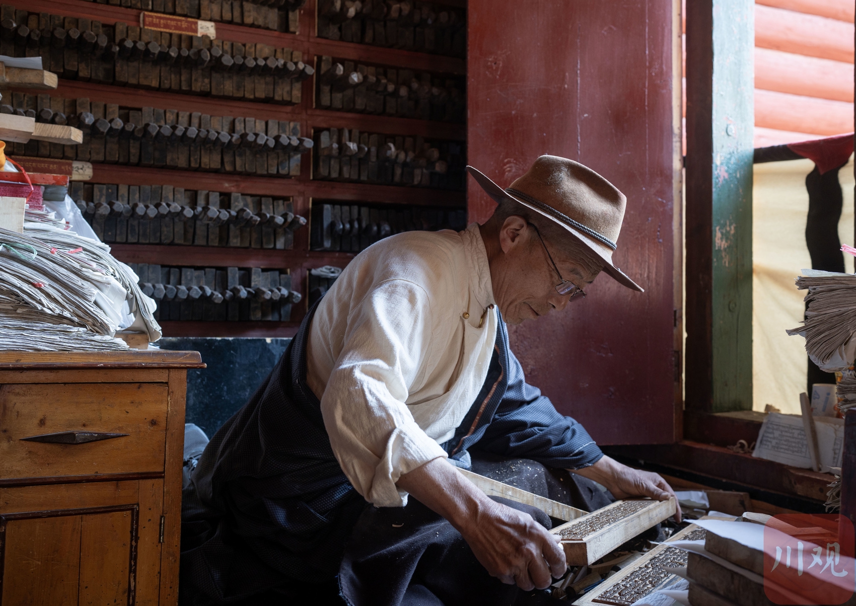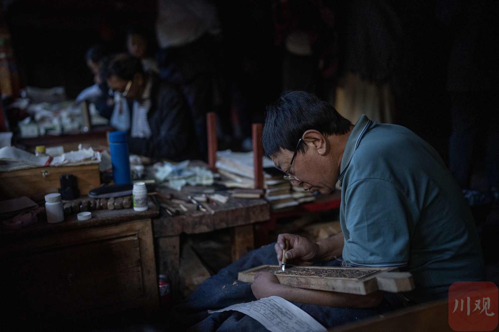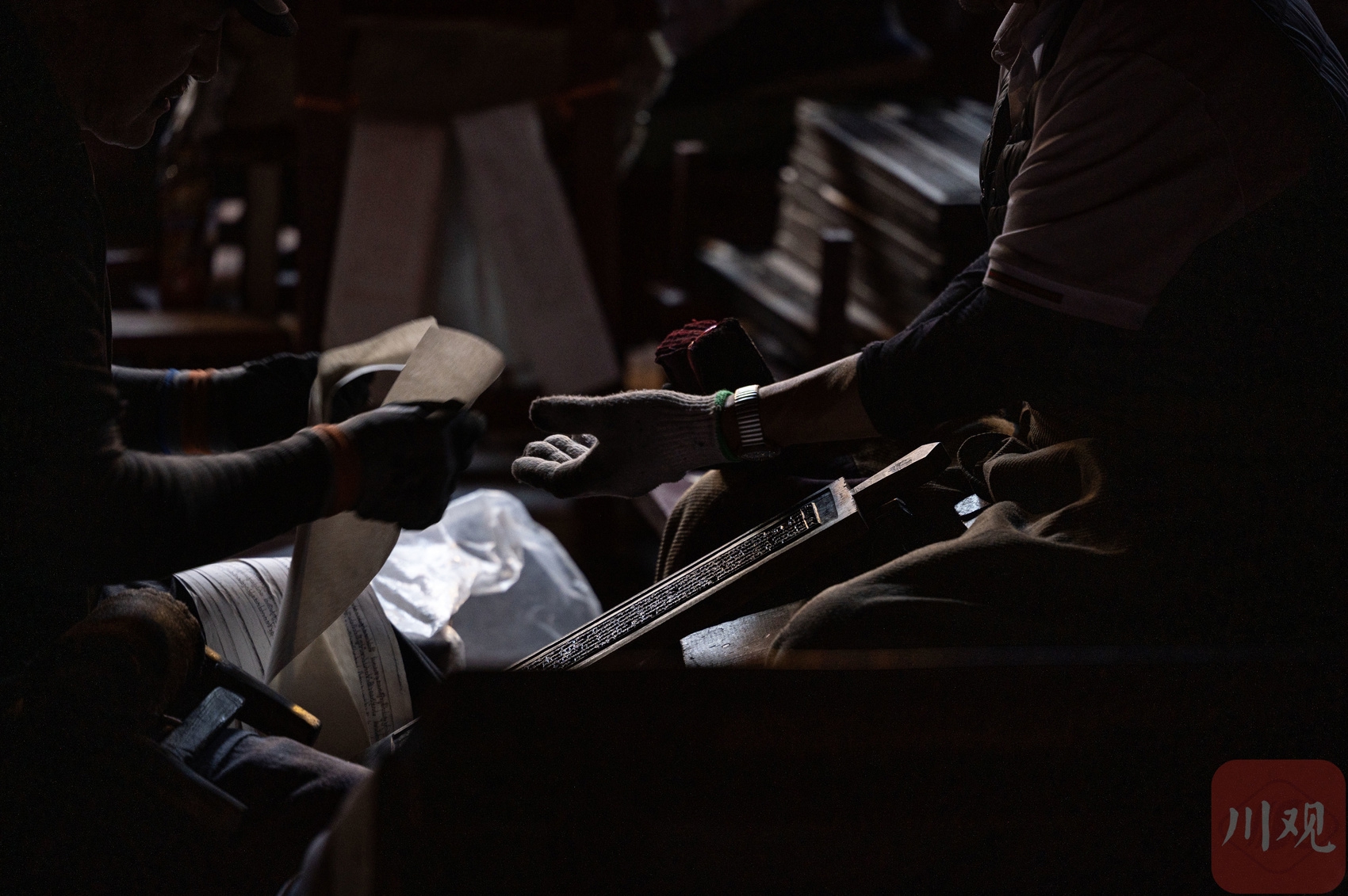 印經(jīng)院工人師傅印制經(jīng)書。