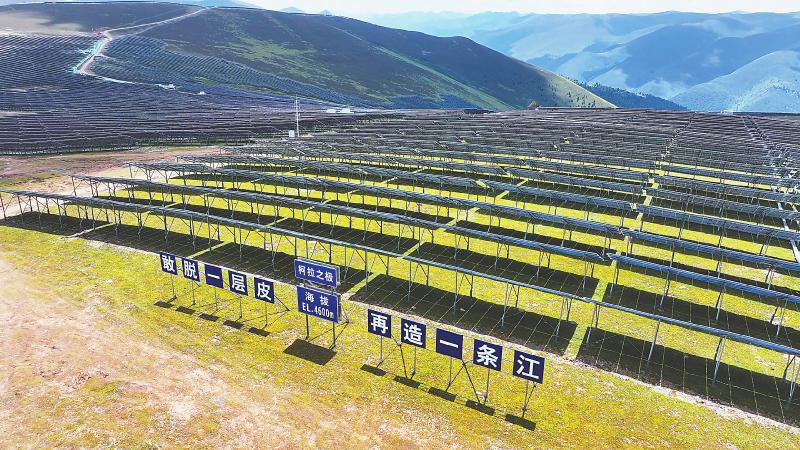 “光”與“電”,正在成為這里的新風景。雅江縣境內,海拔4600米的扎拉托桑雪山上,一排排光伏板組成的“光伏海”在崇山峻嶺間逐光發(fā)電,與奔流不息的雅礱江遙相呼應,一靜一動間水光共舞,點亮山河。