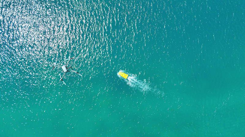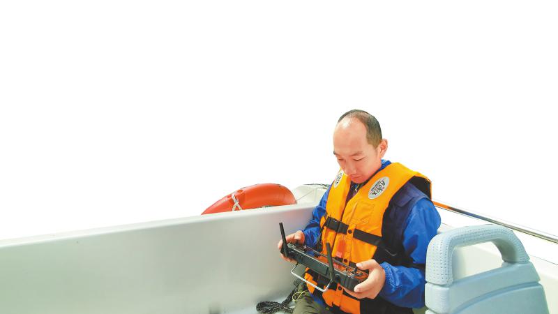 無人船與無人機(jī)相互配合,對九寨溝內(nèi)這個最大、最深的高山湖泊進(jìn)行水下、水上同步測量。韋維 攝