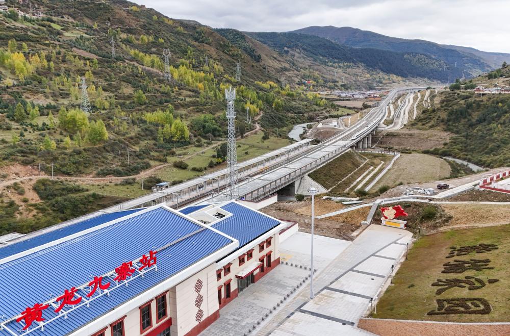一列動(dòng)車(chē)駛?cè)氪ㄇ噼F路黃龍九寨站。新華社記者 王曦 攝
