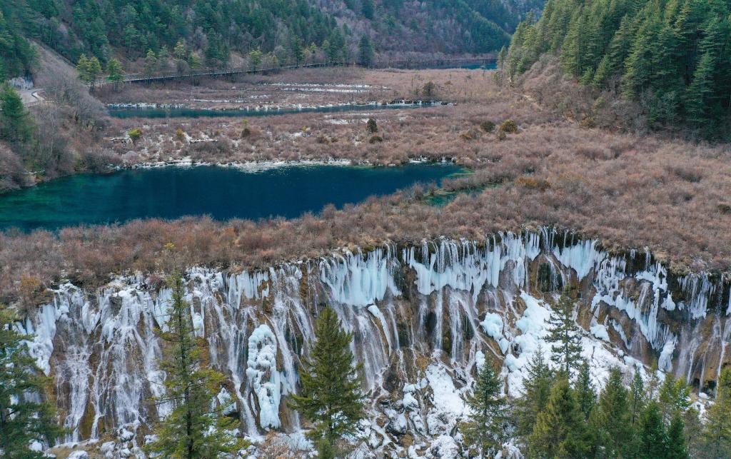 這是冬季在九寨溝景區(qū)拍攝的諾日朗瀑布形成的冰瀑景觀(guān)。新華社記者 王曦 攝