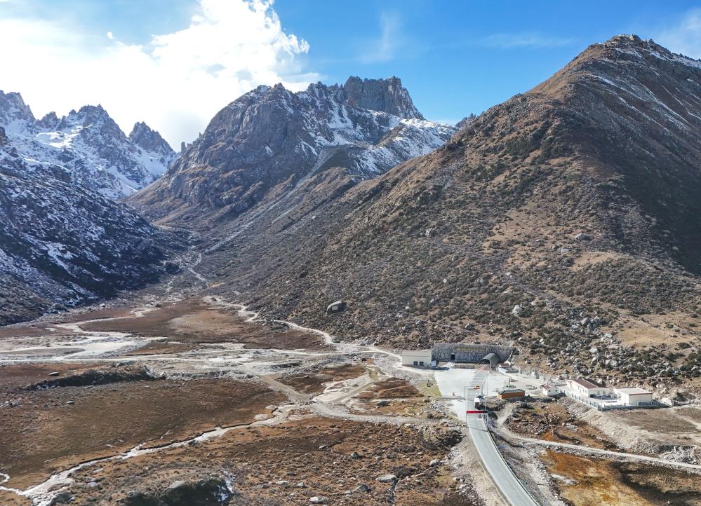 這是11月1日拍攝的317國道雀兒山隧道口(無人機照片)。新華社記者 王曦 攝
