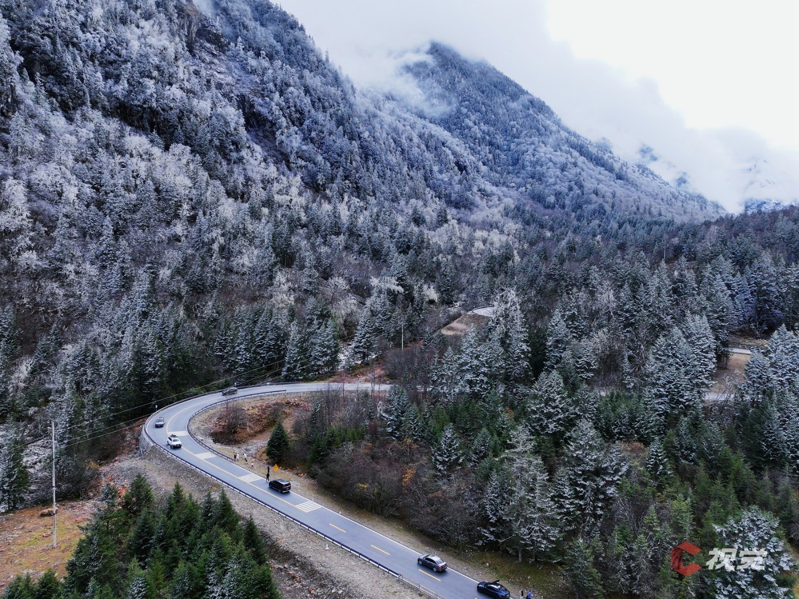 初冬時(shí)節(jié)的川西,有著堪比人間仙境的美,從阿壩網(wǎng)紅公路“理小路”一路馳行到達(dá)畢棚溝,路途中可見皚皚雪山、五彩斑斕的彩林、晶瑩剔透的霧凇、碧波澄澈的海子、絡(luò)繹不絕的車輛與游人……多重的美景,繪就出一個(gè)美輪美奐的“童話世界”。