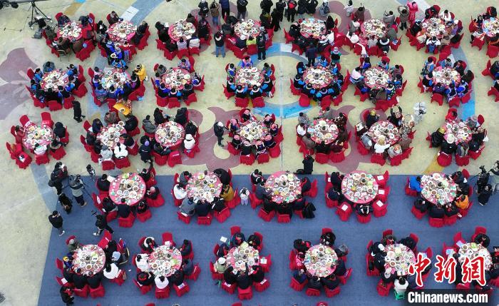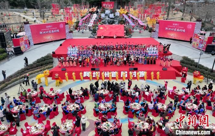 1月25日,四川理縣,阿壩州首屆村晚上的壩壩宴。中新社記者 安源 攝