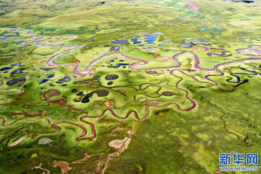 在西藏昌都市貢覺縣拉妥鄉(xiāng)拍攝的拉妥濕地(2020年9月28日攝,無人機照片)。新華社記者 詹彥 攝