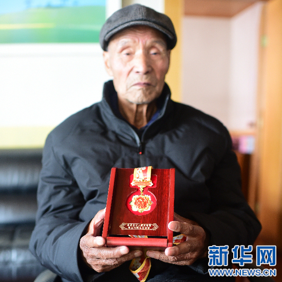 12月31日,吳多吉老人和他的“慶祝中華人民共和國成立70周年”紀(jì)念章。新華網(wǎng) 張宸 攝