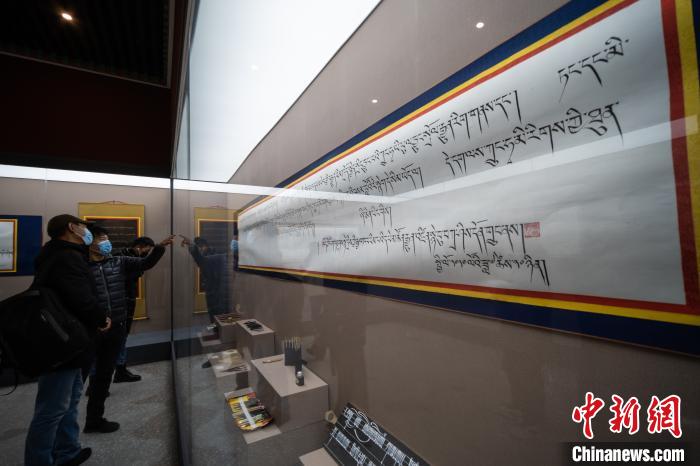 圖為民眾參觀藏文書法展。何蓬磊 攝