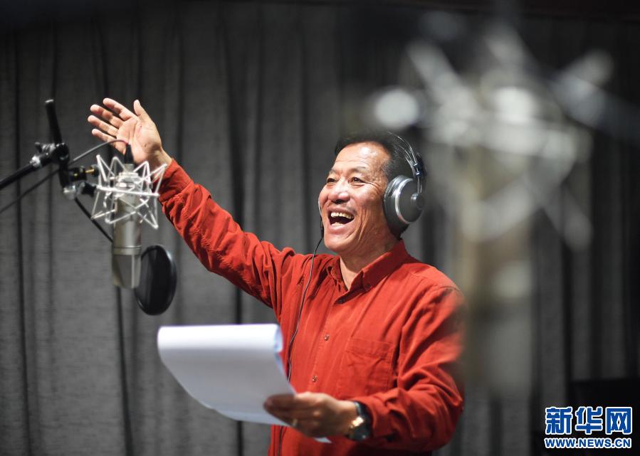 在中國(guó)西藏廣播電影電視藏語(yǔ)節(jié)目譯制中心,配音演員倫珠巴桑正在給藏語(yǔ)節(jié)目配音(2019年3月6日攝)。新華社記者普布扎西 攝