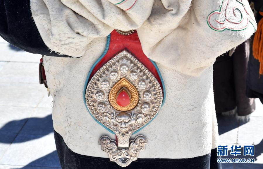 藏北當雄縣一名牧區(qū)男子佩戴的銀飾(2月12日攝)。新華社記者 覺果 攝