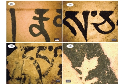 測定藏紙的年代,主要有兩種方法,一種是通過藏文的字體及內(nèi)容判定大致年代,還有一種是碳14測年技術(shù)。論文第一作者、中國科學院大學特別研究助理韓賓博士介紹,他們在請藏文專家進行文字預判的基礎(chǔ)上,在兩個不同的實驗室對藏紙樣品開展了碳14測年。結(jié)果表明該組殘片為12—13世紀古紙殘片。測年數(shù)據(jù)的一致性,也表明碳14測年技術(shù)可以很好地判定藏紙的年代,為后續(xù)藏紙的研究提供了參考。