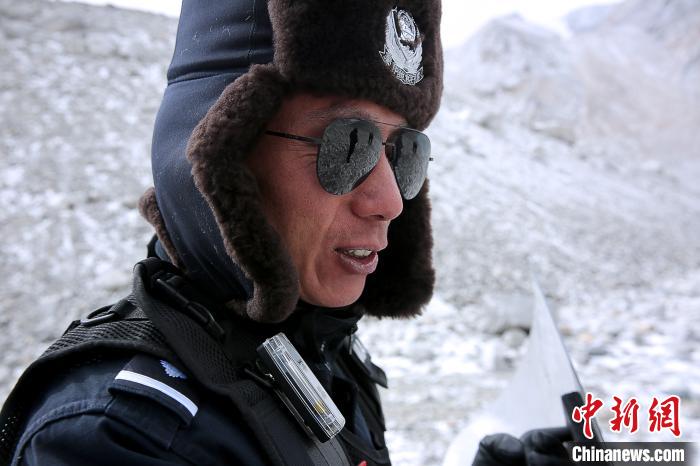 在平均海拔5800米的絨布冰川,每走一步,民警們腳下像是有千鈞重量,大口大口喘著粗氣,臉凍得通紅,眉毛掛上了層層冰霜。所長格桑回憶到:“進(jìn)入冰川,一片潔白,搜救好似大海撈針,僅憑直覺盲找,民警稍有不慎就會(huì)掉入暗藏的冰窟窿?!毙疫\(yùn)的是,經(jīng)過7個(gè)多小時(shí)的搜救后,走失的游客被找到。