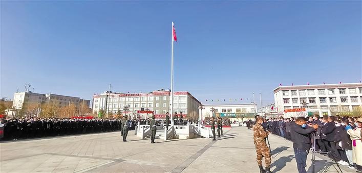 日喀則市紀(jì)念“3·28”西藏百萬農(nóng)奴解放紀(jì)念日升旗儀式現(xiàn)場。