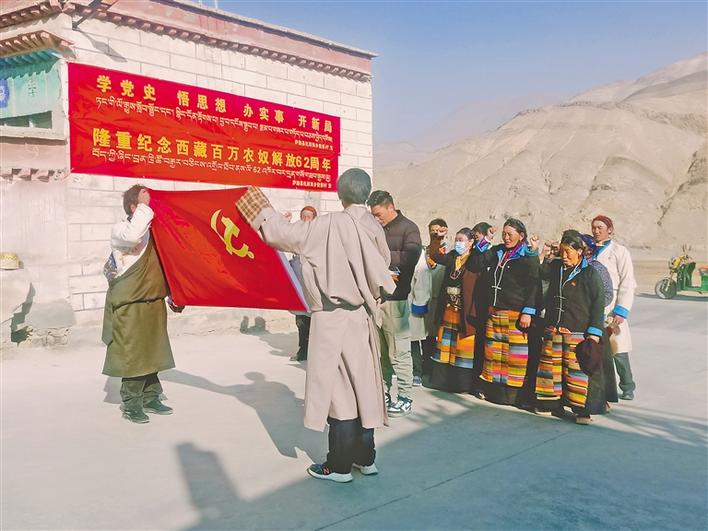 薩迦縣扎西崗鄉(xiāng)查務(wù)村農(nóng)牧民黨員開展重溫入黨誓詞活動。