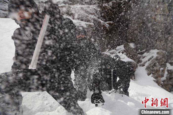 民警們一路趟冰河、翻雪山,向目標(biāo)點位艱難前行。隨著海拔升高,含氧量降低,即使是西藏本地人,初上乃堆拉的阿旺邊巴也開始?xì)獯跤酢?/p>