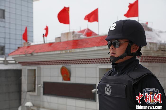 連日來,執(zhí)勤隊像往常一樣開展巡邏。民警楊帆是此次乃堆拉執(zhí)勤任務(wù)的帶隊干部,組織民警開展巡邏是他每天必須完成的任務(wù)。大家穿戴好單警裝備,楊帆格外對新警阿旺邊巴叮囑高原巡邏注意事項。