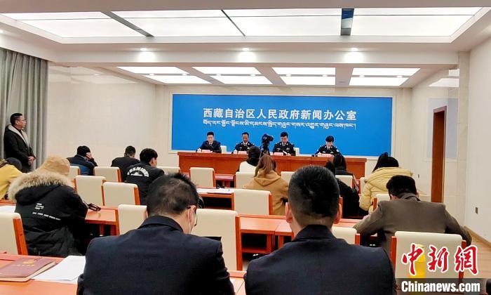 圖為西藏公安機(jī)關(guān)相關(guān)負(fù)責(zé)人發(fā)布三年以來的掃黑除惡專項(xiàng)斗爭(zhēng)情況。貢桑拉姆 攝
