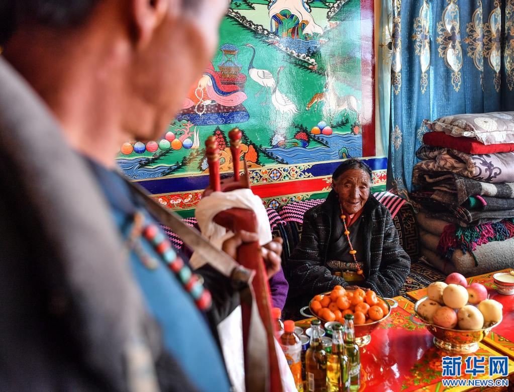 家人給達確老人唱歌(1月14日攝)。新華社記者 普布扎西 攝