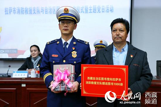 雙方還簽訂了共建協(xié)議,就圖書流動站建設(shè)、消防志愿服務(wù)隊建設(shè)和數(shù)字化電子圖書服務(wù)等達(dá)成一致。旦增卓瑪代表西藏自治區(qū)圖書館向拉薩市消防救援支隊贈送書籍1000冊。
