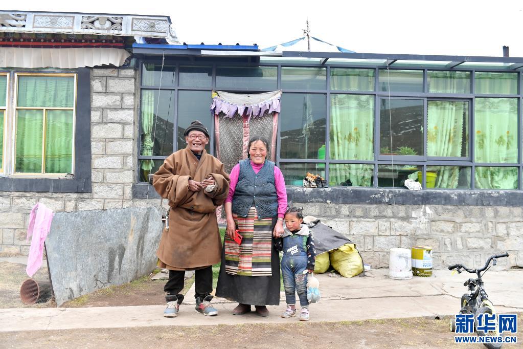 索朗多杰老人和家人在院子里合影(4月15日攝)。新華社記者 孫瑞博 攝