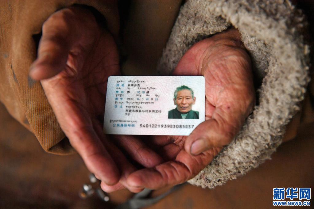 索朗多杰老人的身份證(4月15日攝)。新華社記者 孫瑞博 攝