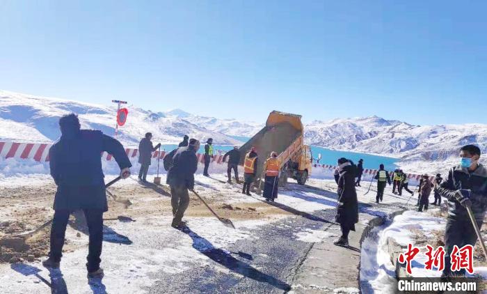 圖為通往羊卓雍措途中崗巴拉山此前發(fā)生持續(xù)降雪,養(yǎng)護工人進行道路應(yīng)急保通現(xiàn)場。扎囊養(yǎng)護段供圖
