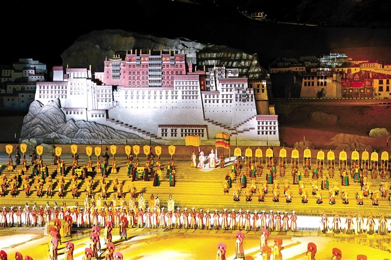 圖為《文成公主》大型實景劇演出現(xiàn)場。(資料圖片)記者 李洲 次旺 攝