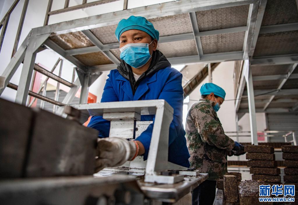 西藏易貢茶場(chǎng)的工人在制作磚茶(4月1日攝)。新華社記者 孫非 攝