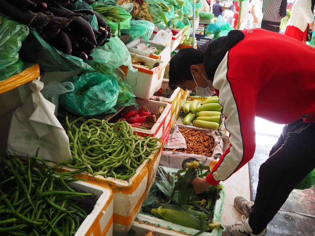 一大早,拉薩市民洛桑就來到離家不遠(yuǎn)的拉薩八一農(nóng)產(chǎn)品市場(chǎng)買菜。